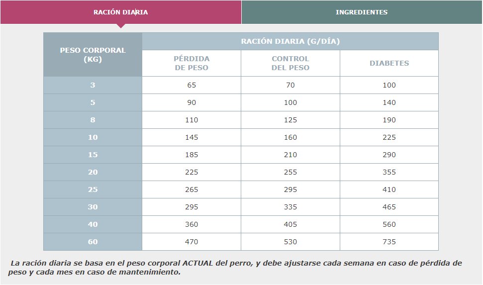 -Restricción moderada de la ración diaria. Unas raciones diarias de alimento moderadas facilitan una pérdida de peso suave, lo que ayuda a conseguir un mejor cumplimiento (eficacia probada por Virbac).