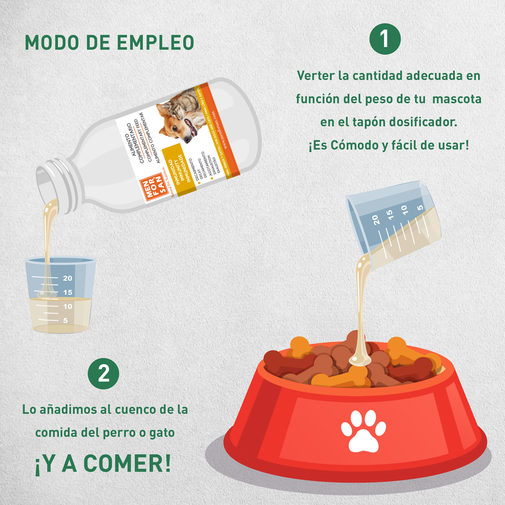 Complemento nutricional líquido para perros y gatos con extracto de GINSENG, AVENA, GRANADA y TE VERDE.Además, contiene aceite de salmón con alto contenido de Omega3